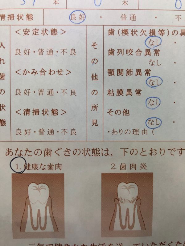 歯医者さんも治療するかどうか考えていた虫歯も10年以上前から進行せず、今回も様子見るのみ。